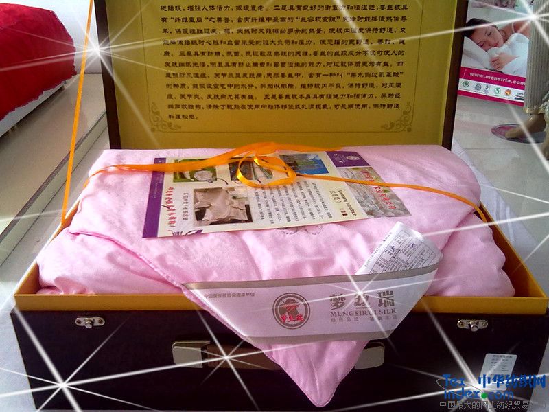 本品采用優(yōu)質(zhì)桑蠶雙宮繭為原料,經(jīng)傳統(tǒng)手工抽絲工藝及現(xiàn)代科學(xué)除味配方加工精制而成。屬于天然綠色產(chǎn)品和家居中的極品,富含18種氨基酸,具有抗菌、抗過(guò)敏及親膚的天性,長(zhǎng)期使用,可促進(jìn)人體新陳代謝,增強(qiáng)細(xì)胞活力,延緩衰老,并可預(yù)防肩周炎、關(guān)節(jié)炎、風(fēng)濕、感冒、過(guò)敏等疾病。由于蠶絲是能夠防霉的天然纖維,因此,它對(duì)防止病菌滋生,護(hù)理肌膚衛(wèi)生同樣具有非常明顯的功效。