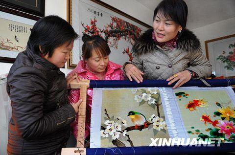 12月2日,刺繡老師劉雅婧(右一)在指導學徒刺繡